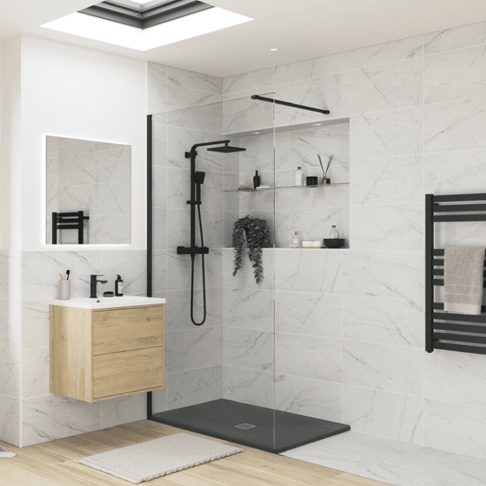 Cascade 25mm Anthracite Rectangular Slate Shower Tray, Center Waste-1400mm x 900mm