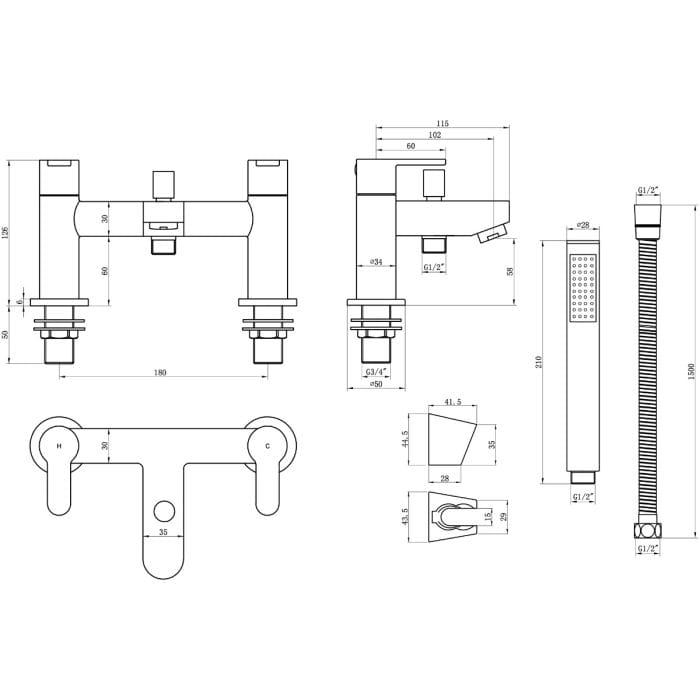 | Mounting Type | Tap is deck mounted, shower handset is wall mounted |