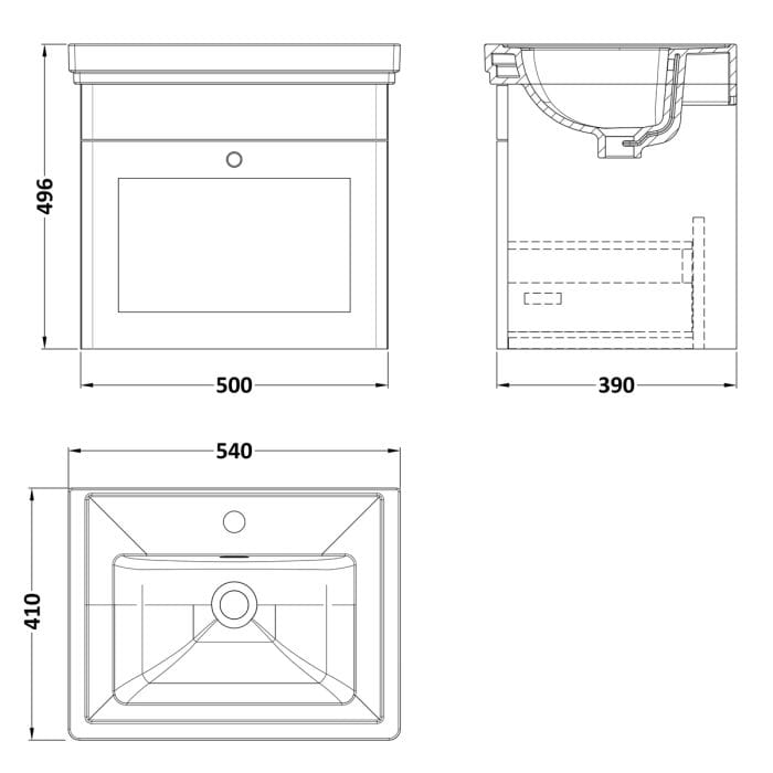 Cascade Laurel 2.0 500mm Wall Hung Vanity Unit – 1 Tap Hole