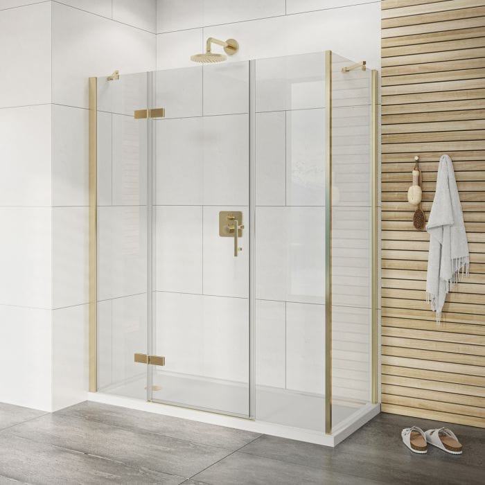 Cascade Pro 8 Brushed Brass Frameless 8mm Hinged Shower Door with 2 Inline Panels