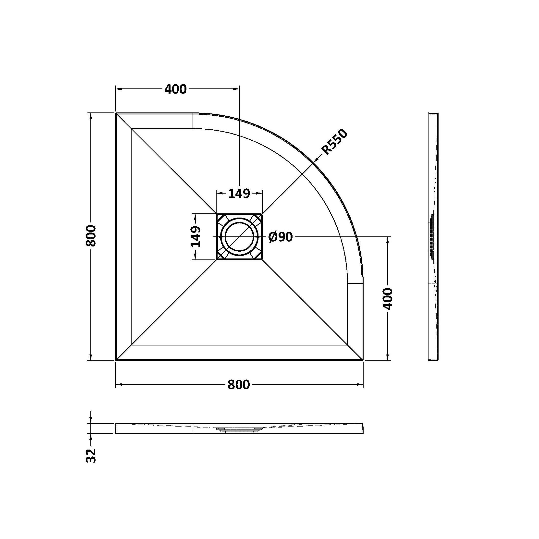 Presenting the Cascade Quadrant Black Slate Shower Tray, a blend of modern aesthetics and high functionality. This elite shower tray, featuring compact dimensions of 800mm x 800mm and a slimline height of 32mm, is a perfect fit for contemporary modern bathrooms. Its center waste design ensures efficient water drainage, promoting a consistently clean and dry showering environment. Kindly note that the tray waste is sold separately.