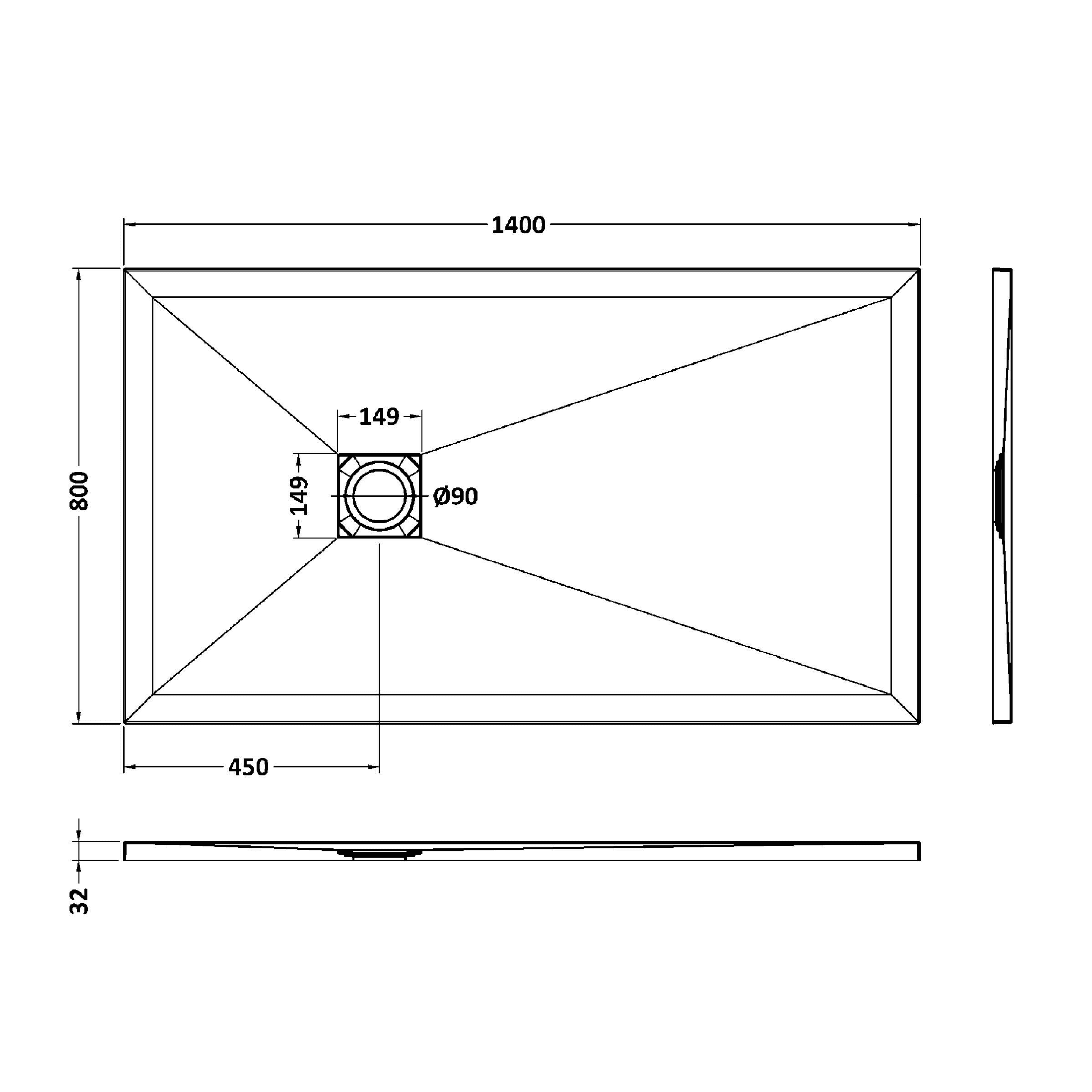 Cascade Rectangular Black Slate Shower Tray, Center Waste-1400mm x 800mm