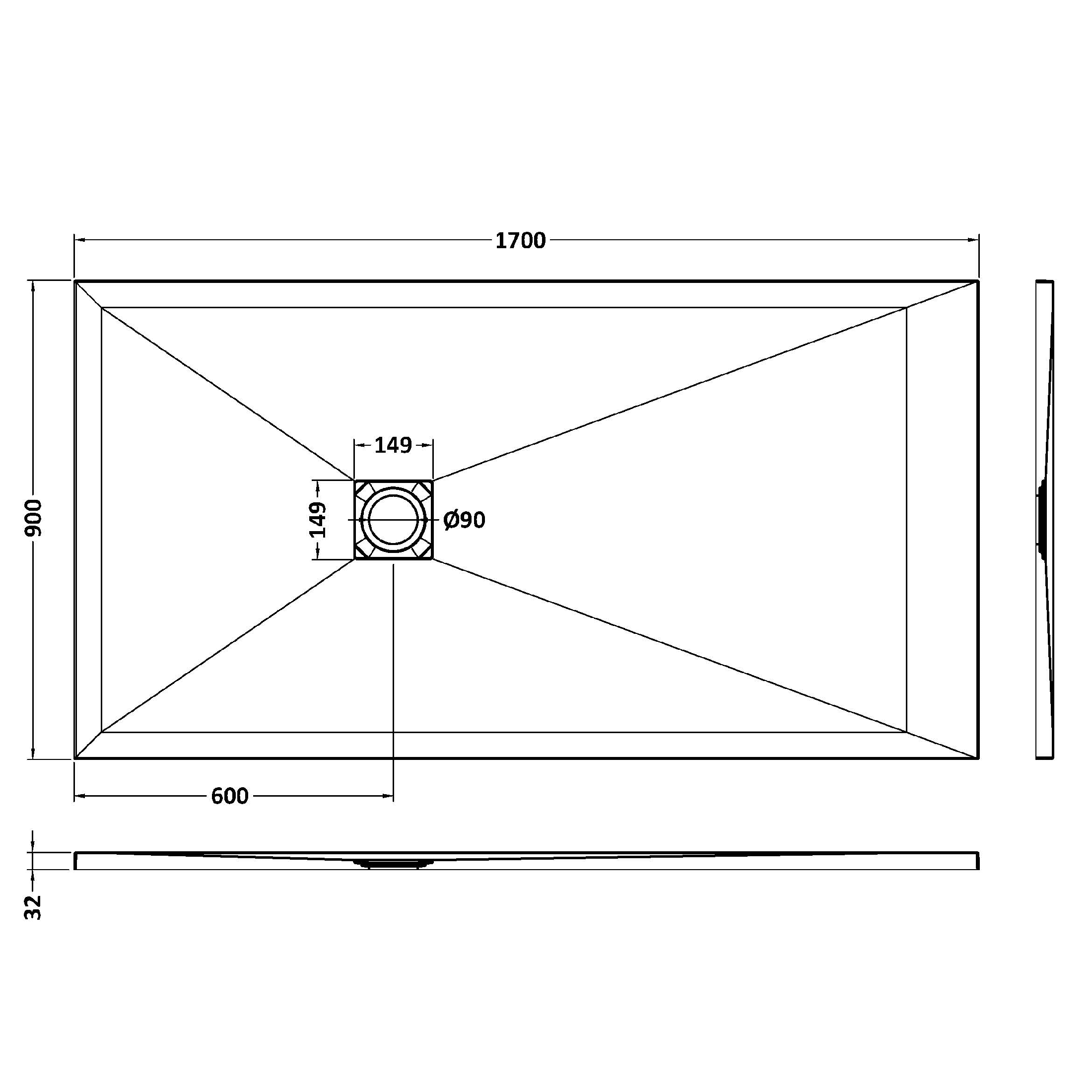 Cascade Rectangular White Slate Shower Tray, Center Waste-1700mm x 900mm