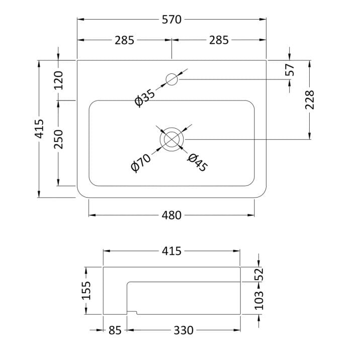 | Contains | Basin and fixings. Tap, waste and bottle trap not included |