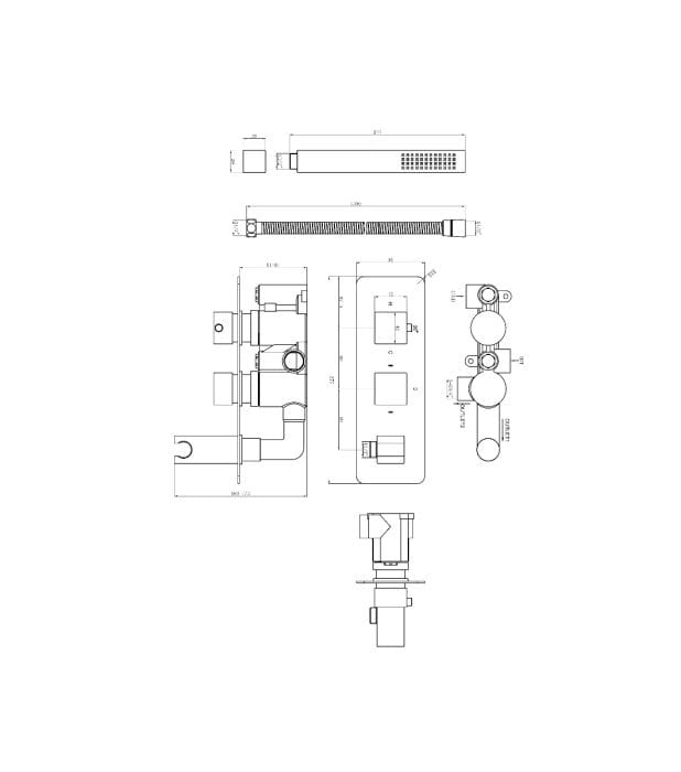 Cascade Una Chrome Square Twin Valve with Integrated Handset, 2 Outlet