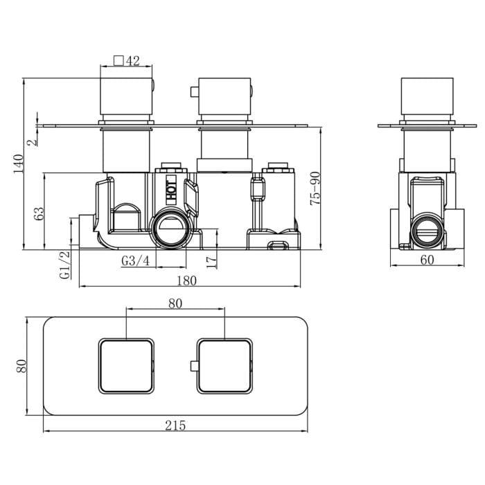 This valve can be fitted horizontally or vertically, and has a concealed design for a minimalist look. The square shape and matt black finish give it a modern edge, while the built-in diverter makes it easy to switch between shower heads. Thermostatically controlled for precise temperature control and safety, this valve is also suitable for high pressure and combi boiler systems.