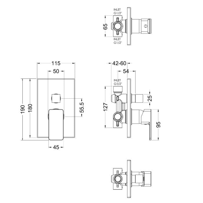 Cascade Una Pure Concealed Manual Shower Valve with Diverter
