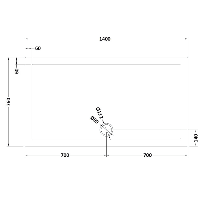 Rivato Slate Grey Rectangular Shower Tray, Side Waste-1400mm x 760mm