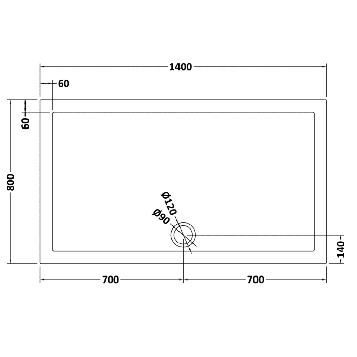 Rivato Slate Grey Rectangular Shower Tray, Side Waste-1400mm x 800mm