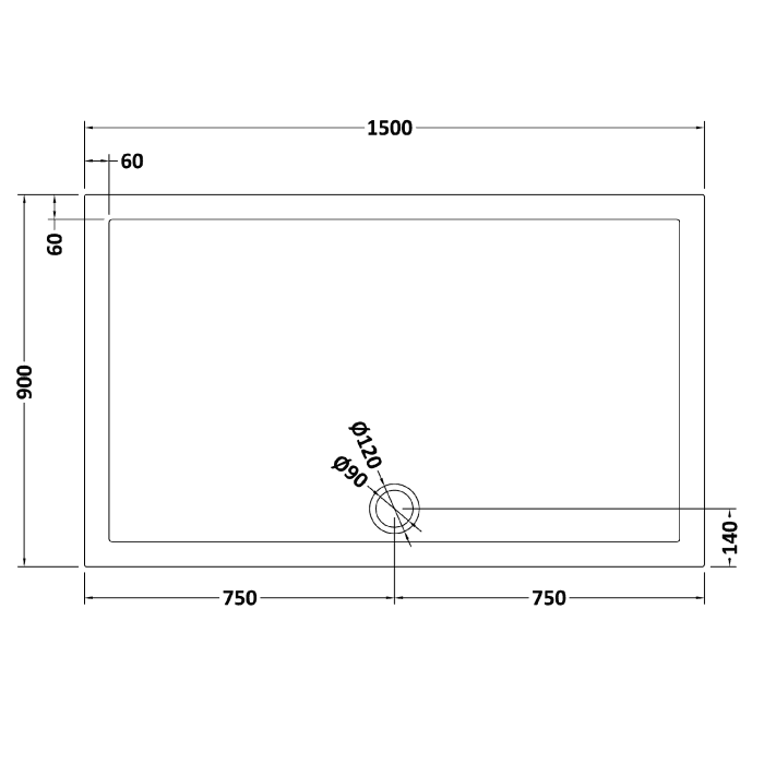 Rivato Slate Grey Rectangular Shower Tray, Side Waste-1500mm x 900mm