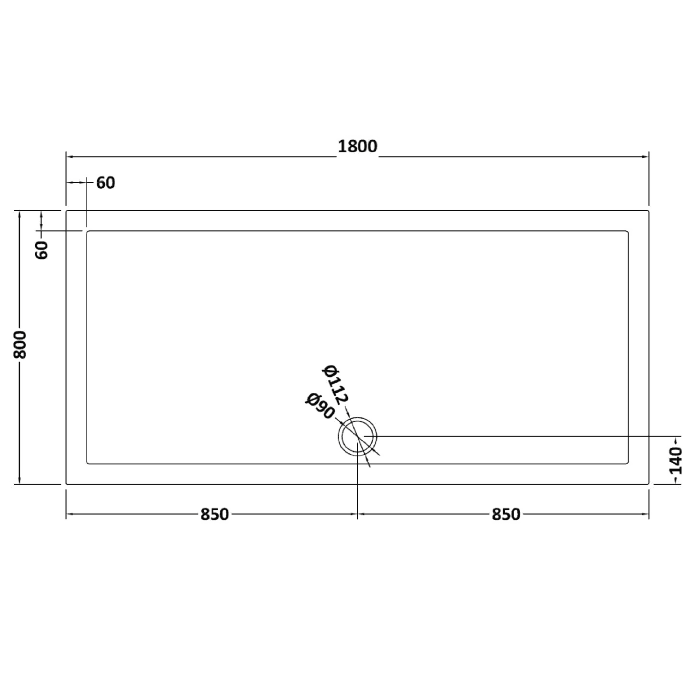 Rivato Slate Grey Rectangular Shower Tray, Side Waste-1800mm x 800mm