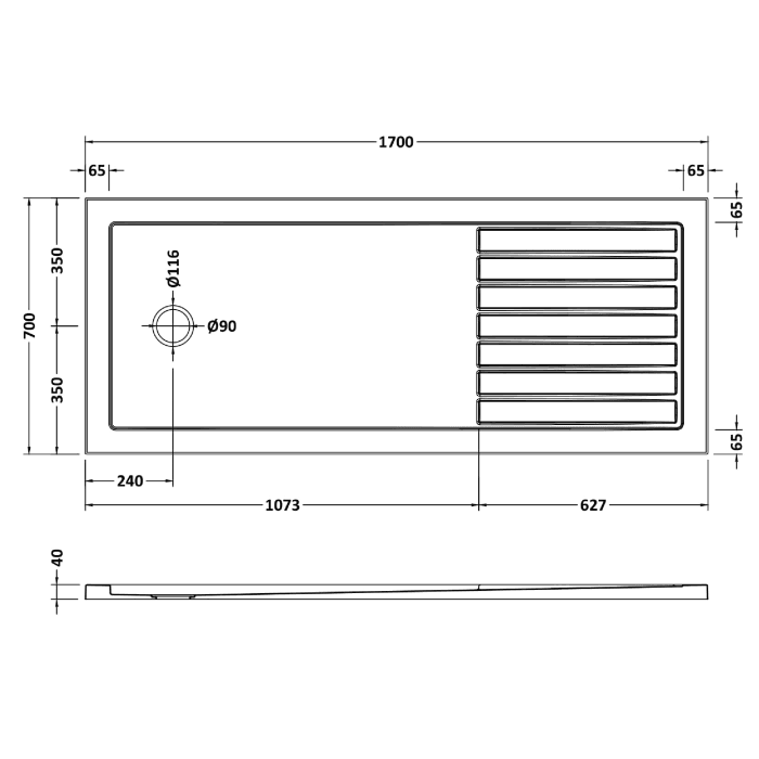 Rivato Slate Grey Walk In Shower Tray, End Waste-1700mm x 700mm